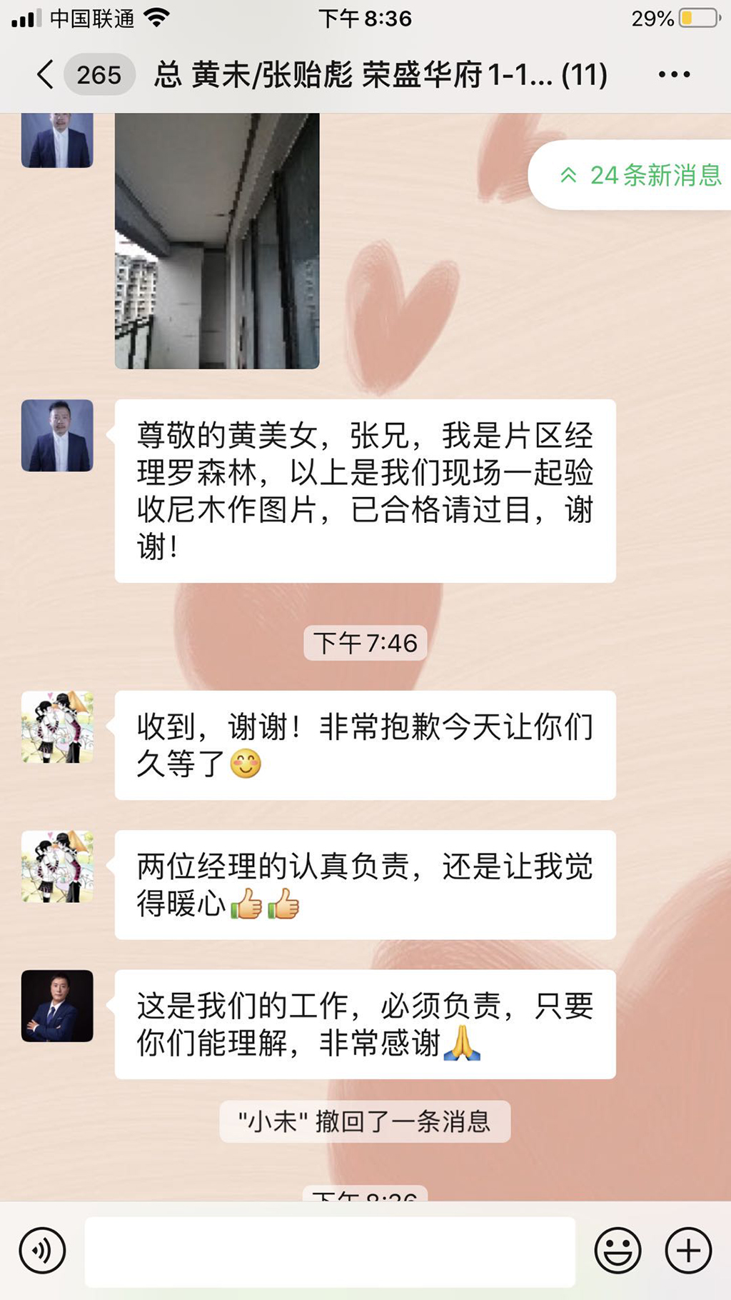 感覺你們公司每個工序都做的非常到位,再次對各位師傅,現(xiàn)場經(jīng)理,片區(qū)經(jīng)理,設(shè)計師點贊。