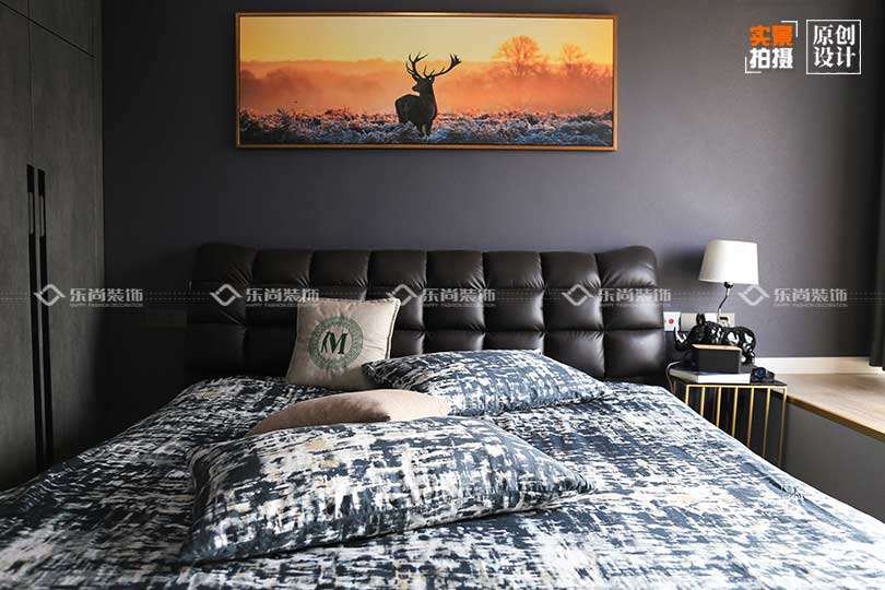 主臥是他夜晚最終的歸屬地,整個(gè)房間他喜歡暗灰色的感覺(jué),但同時(shí)也需要一點(diǎn)溫暖的調(diào)節(jié),所以他最喜歡床頭的那幅畫…..
