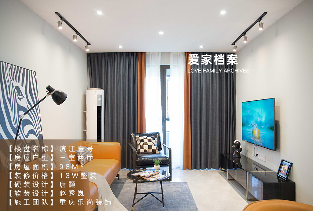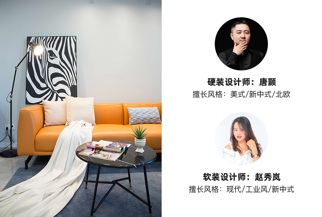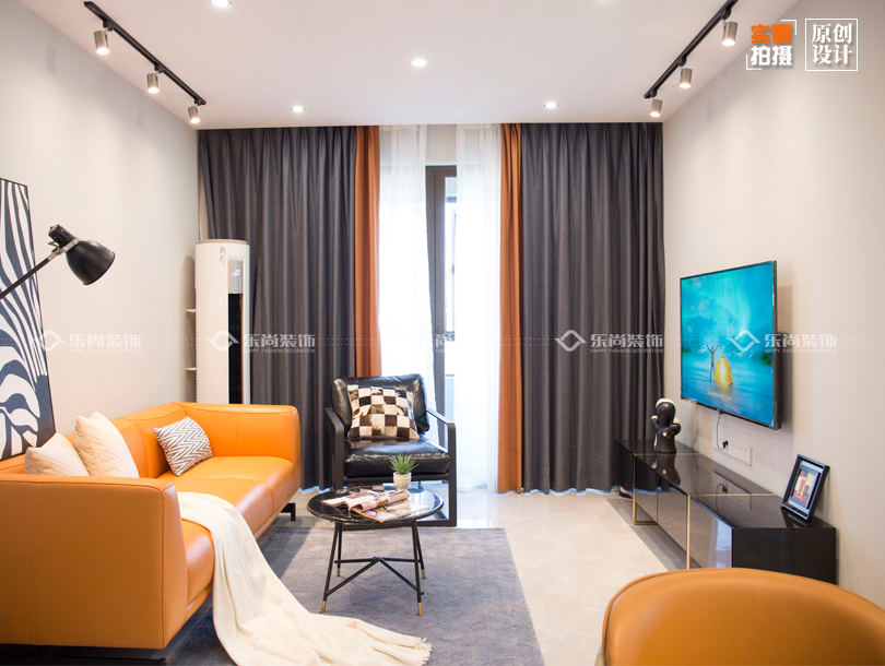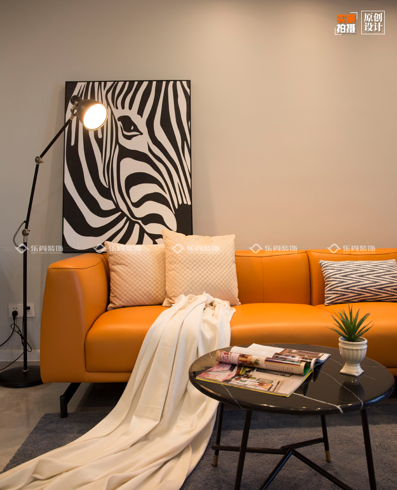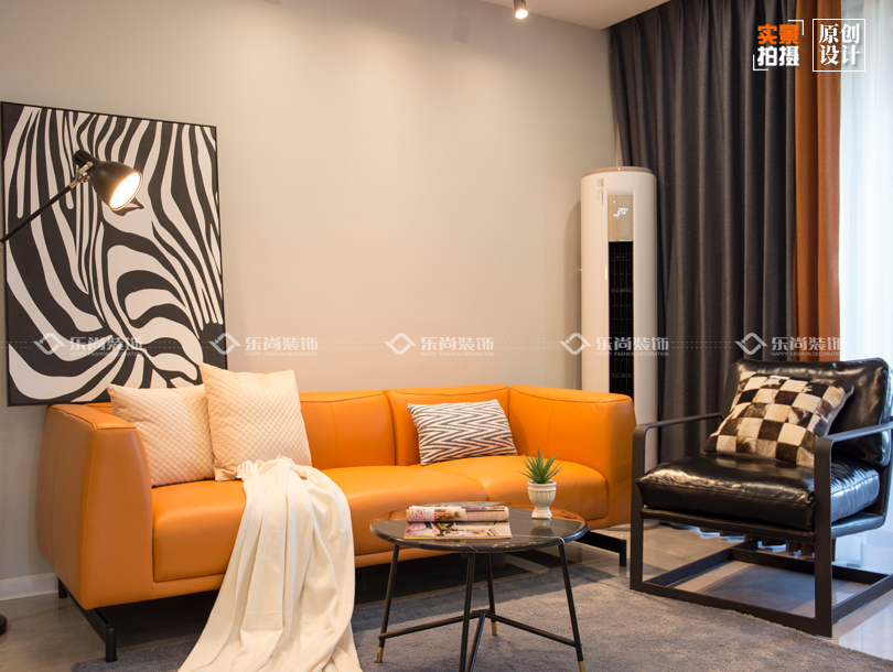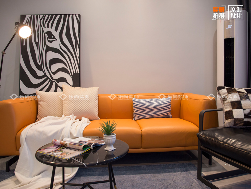 本案是個(gè)90的業(yè)主,是一個(gè)熱愛生活愛旅游愛玩,性情又大大咧咧的小姐姐,所以當(dāng)時(shí)在前期洽談軟裝的時(shí)候都選的特別簡單。往往最簡單的東西搭配的效果也是最好的。因?yàn)檫@個(gè)業(yè)主是一個(gè)人居住我們?cè)跍贤ㄜ浹b的時(shí)候在色彩上都用的比較大膽,整體色調(diào)以深色調(diào)為基調(diào)搭配愛馬仕橙的皮質(zhì)三人位沙發(fā) ,大量的亮色系家具從地磚到墻面都營造出了簡約而又時(shí)尚的舒適感,這樣每次下班都更有回家的欲望。