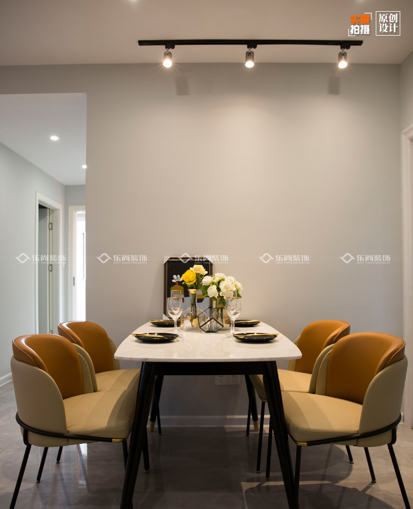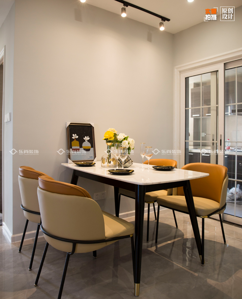 本案大量采用了亮色系,亮色的愛馬仕橙與高級(jí)灰結(jié)合顯得整個(gè)空間靚麗有層次,在加上大理石的家具更加顯得空間整體又有檔次。
