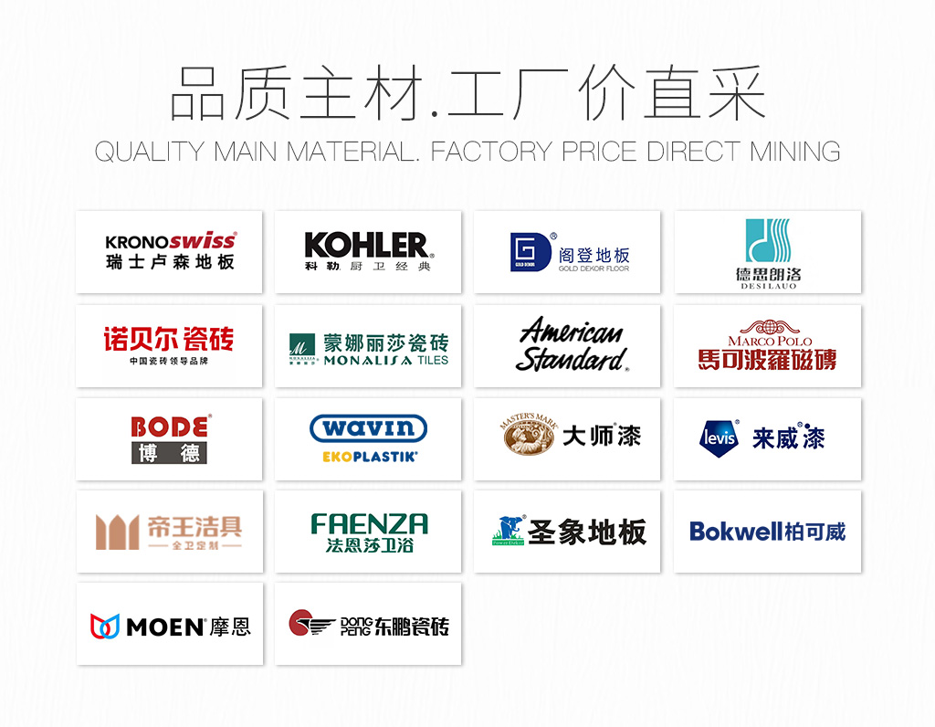 材料清單:馬可波羅瓷磚,菲儷櫥柜,美標(biāo)潔具,開心木門。
