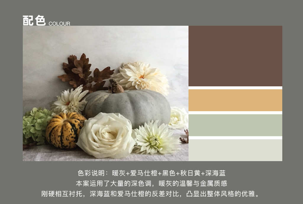 色彩說明:暖灰+愛馬仕橙+黑色+秋日黃+深海藍(lán)