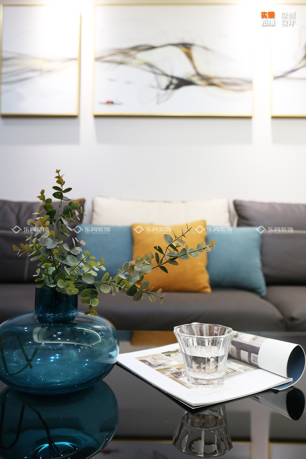 客廳采用烤漆與金屬質(zhì)感材質(zhì)相結(jié)合的家具,提升空間的品質(zhì)感,在飾品的選擇上用藍(lán)色作為整個(gè)空間的點(diǎn)綴色使整體更加豐富,溫馨,優(yōu)雅。