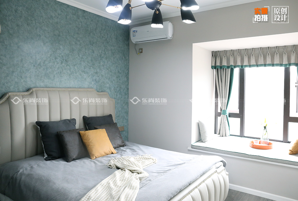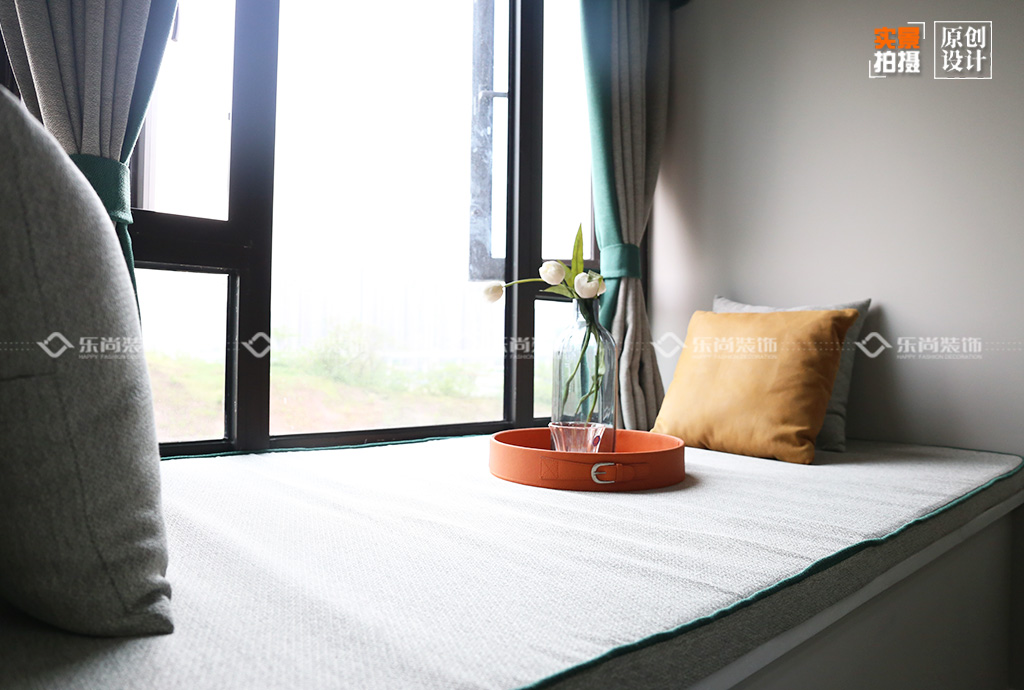 3、拆除臥室飄窗增大室內(nèi)面積,同時(shí)注意頂部處理和家具擺放位置的空間和美觀性。