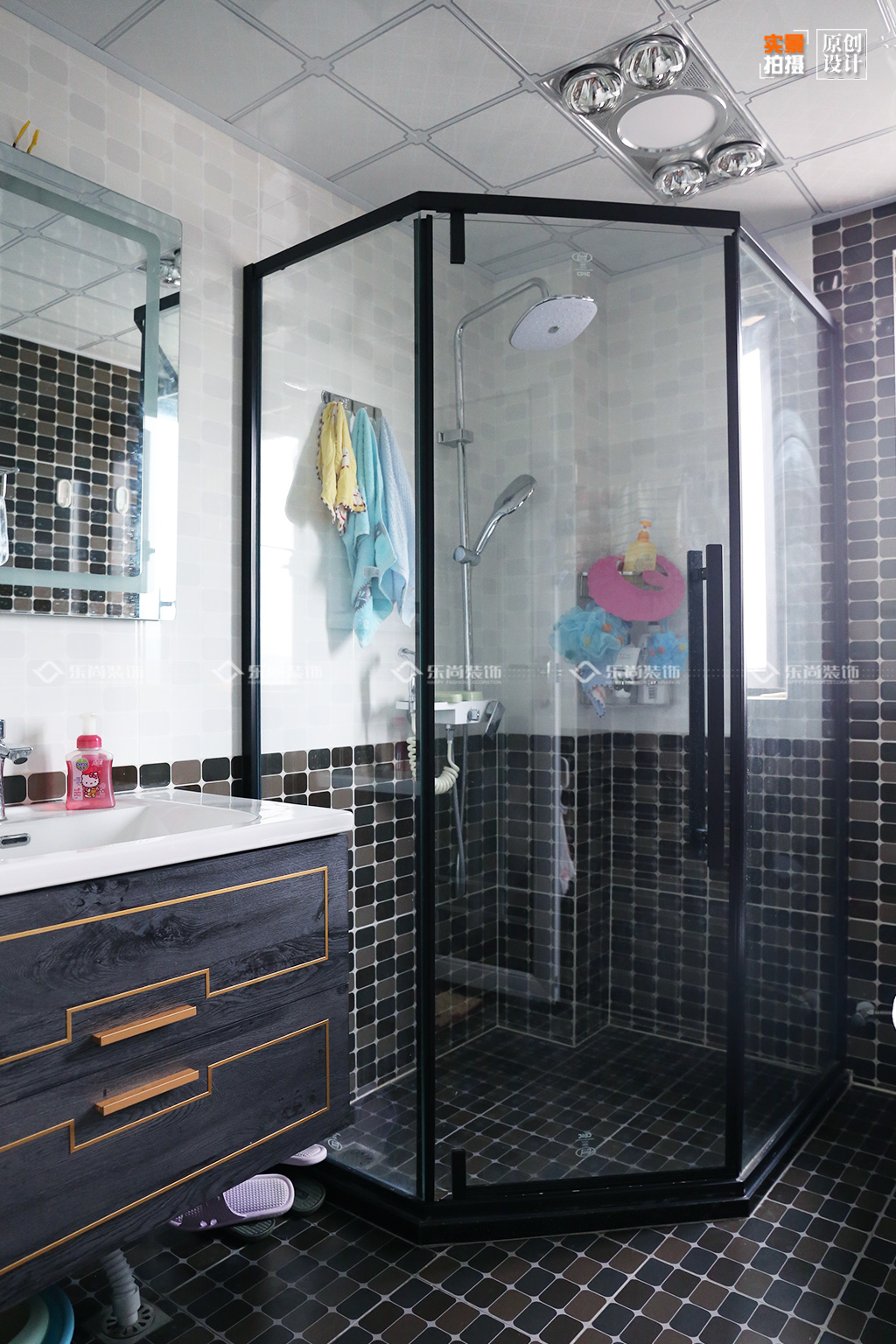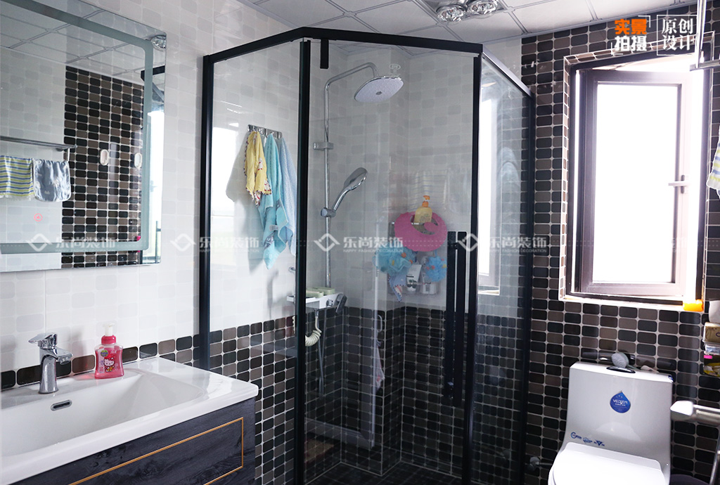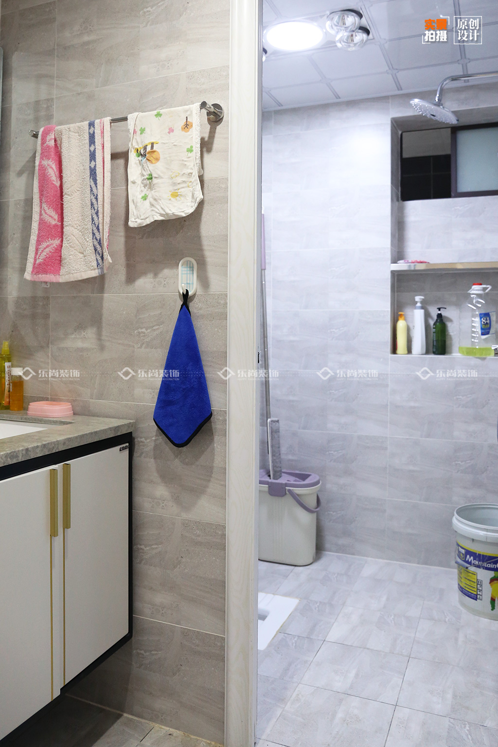 衛(wèi)生間干濕分區(qū)的設(shè)計(jì),滿足了一家人的使用需求,采用了淺灰色的背景,搭配深色的家私,實(shí)現(xiàn)了其他空間風(fēng)格的延續(xù)。