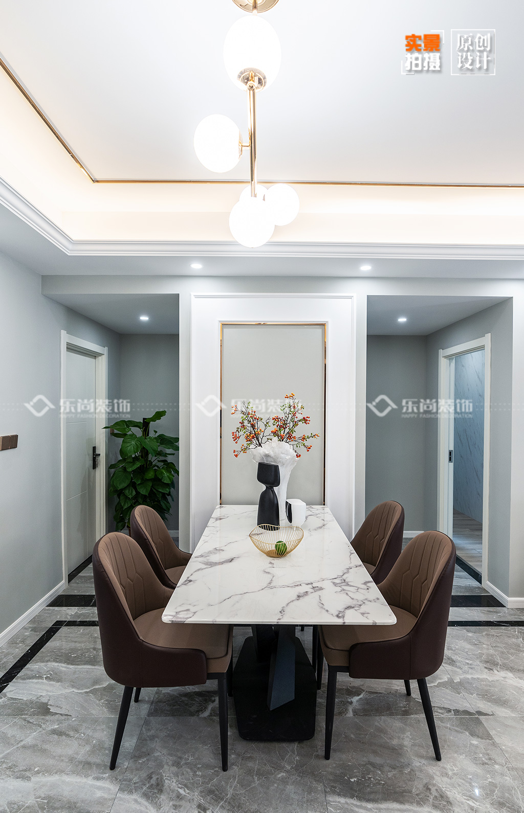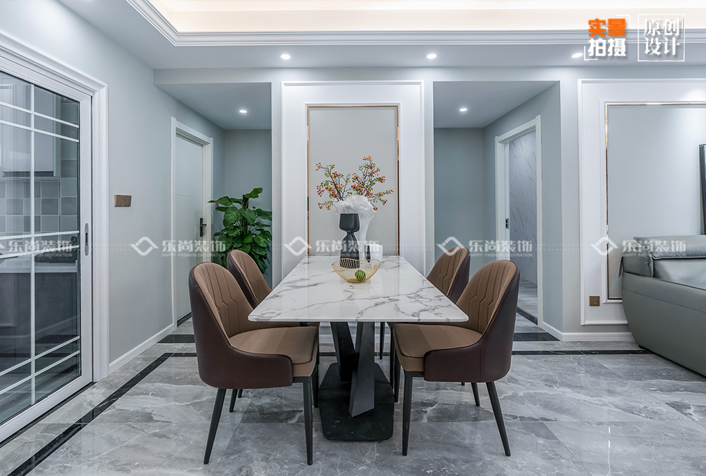 餐廳的搭配也是客廳的延續(xù),餐廳與客廳相連,讓空間的光線自由流動(dòng),視野更加明朗。