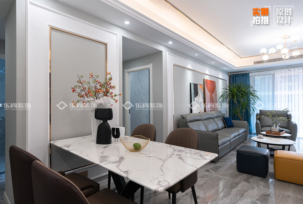 1、選擇現(xiàn)代輕奢風(fēng),既有品位,舒適度也很高,又能相對照顧到家人的審美需求