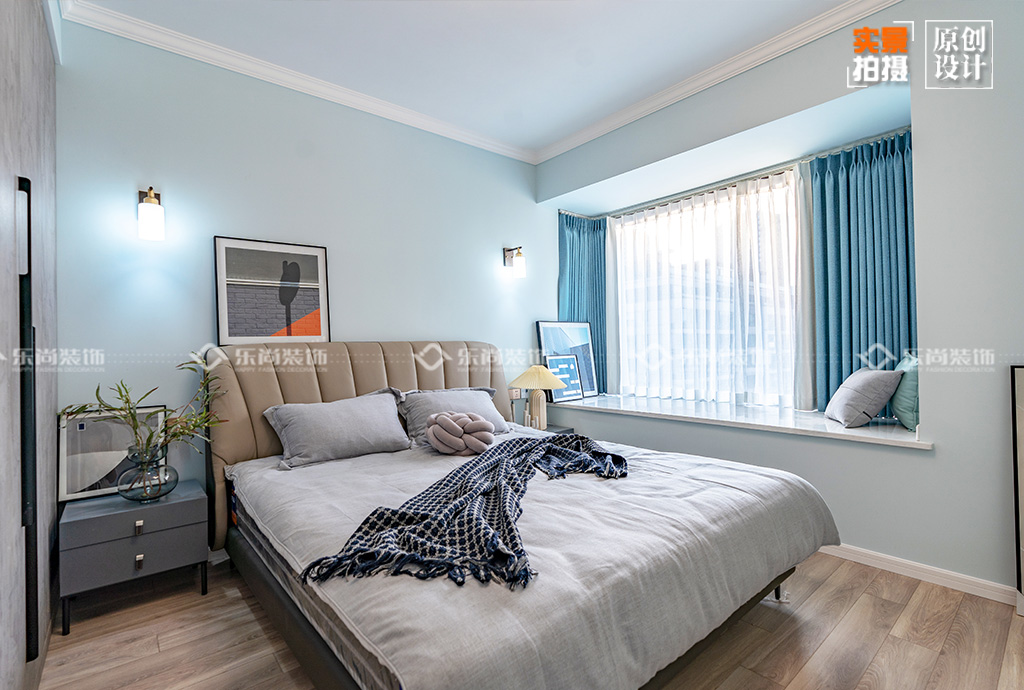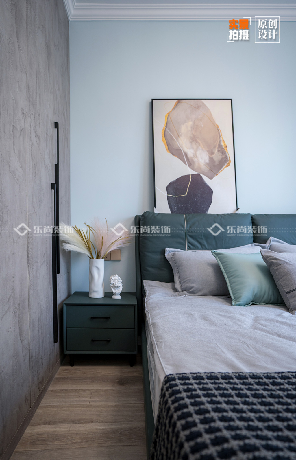 主臥做了兩排大衣柜,充分的滿足了業(yè)主的儲(chǔ)物需求。生活本就是物品越用越多,儲(chǔ)物功能當(dāng)然是越多越好,設(shè)計(jì)就是實(shí)用兼顧美觀。
