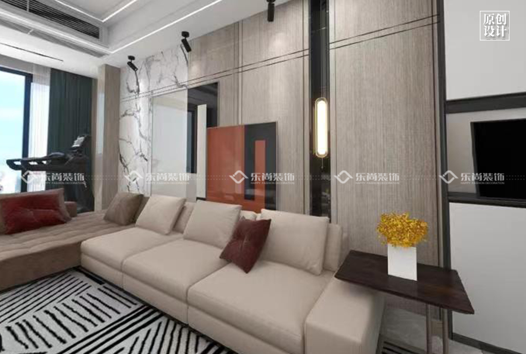 客廳是主人品味的象征,體現了主人的品格地位,也是交友娛樂的場所,電視墻采用大理石的造型,既簡潔又大方,再加上下方溫暖的木格柵,配上頂部照下來的燈光,整個電視墻把客廳提升起來,沙發(fā)墻只做了簡單的處理,單調確不缺趣味