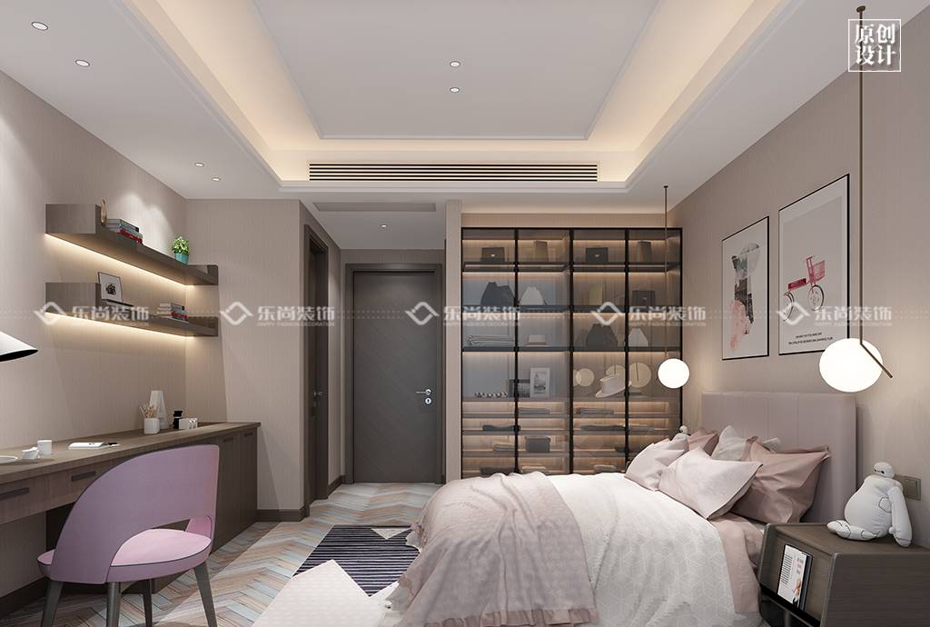 女兒房用藕粉色搭配木紋色,讓女兒在粉色的房間里做家里永遠的小公主。