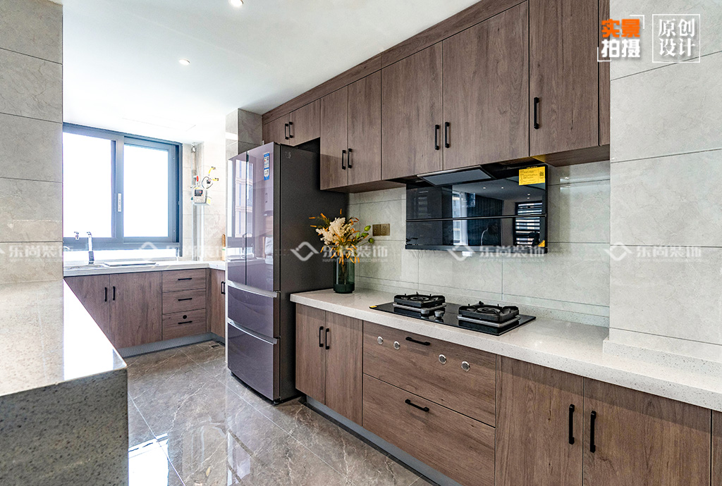 2、半開(kāi)放式的廚房和餐廳相連,讓空間不再局促,增加整體空間感。