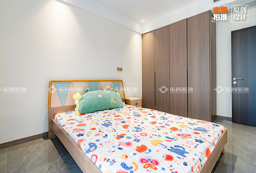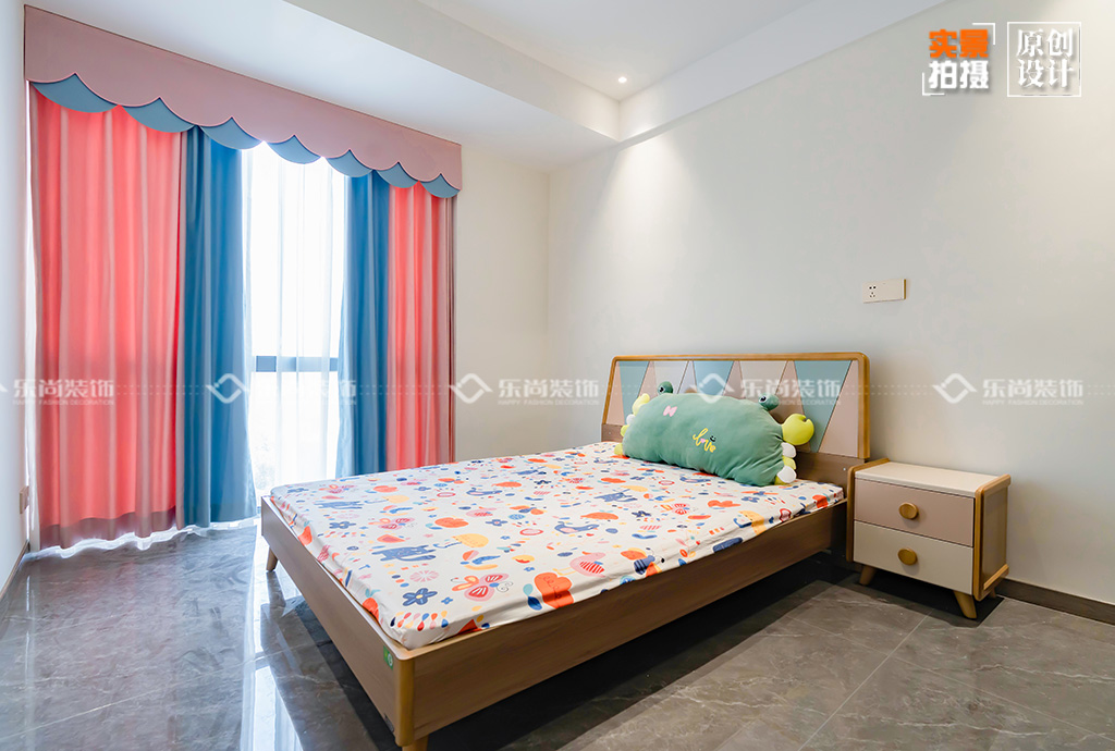 兒童房的空間,配色和設(shè)計(jì)非常簡(jiǎn)約,全屋沒(méi)有任何復(fù)雜的造型,只用粉色加上藍(lán)色的軟裝窗簾以及可愛(ài)的兒童床,給孩子打造一個(gè)開(kāi)放式無(wú)拘束的臥室空間。隨著孩子的成長(zhǎng),這件臥室可以隨意裝扮成小朋友喜歡的樣子,去繁從簡(jiǎn),隨性自然。