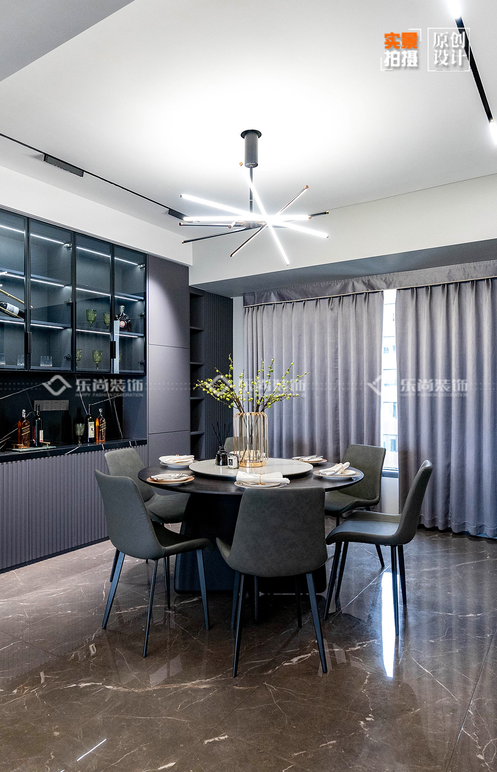 在餐廳的設(shè)計(jì)上,我們以簡(jiǎn)潔為主,沒有復(fù)雜的裝飾,空間感更加通透。一張圓桌,幾把座椅,簡(jiǎn)潔實(shí)用,餐廳并不需要太多的裝飾品,因?yàn)樗闹鹘橇碛衅渌?;飯香豐盈記憶,燈光見證相聚,一家人圍坐一起,便是人間煙火氣。